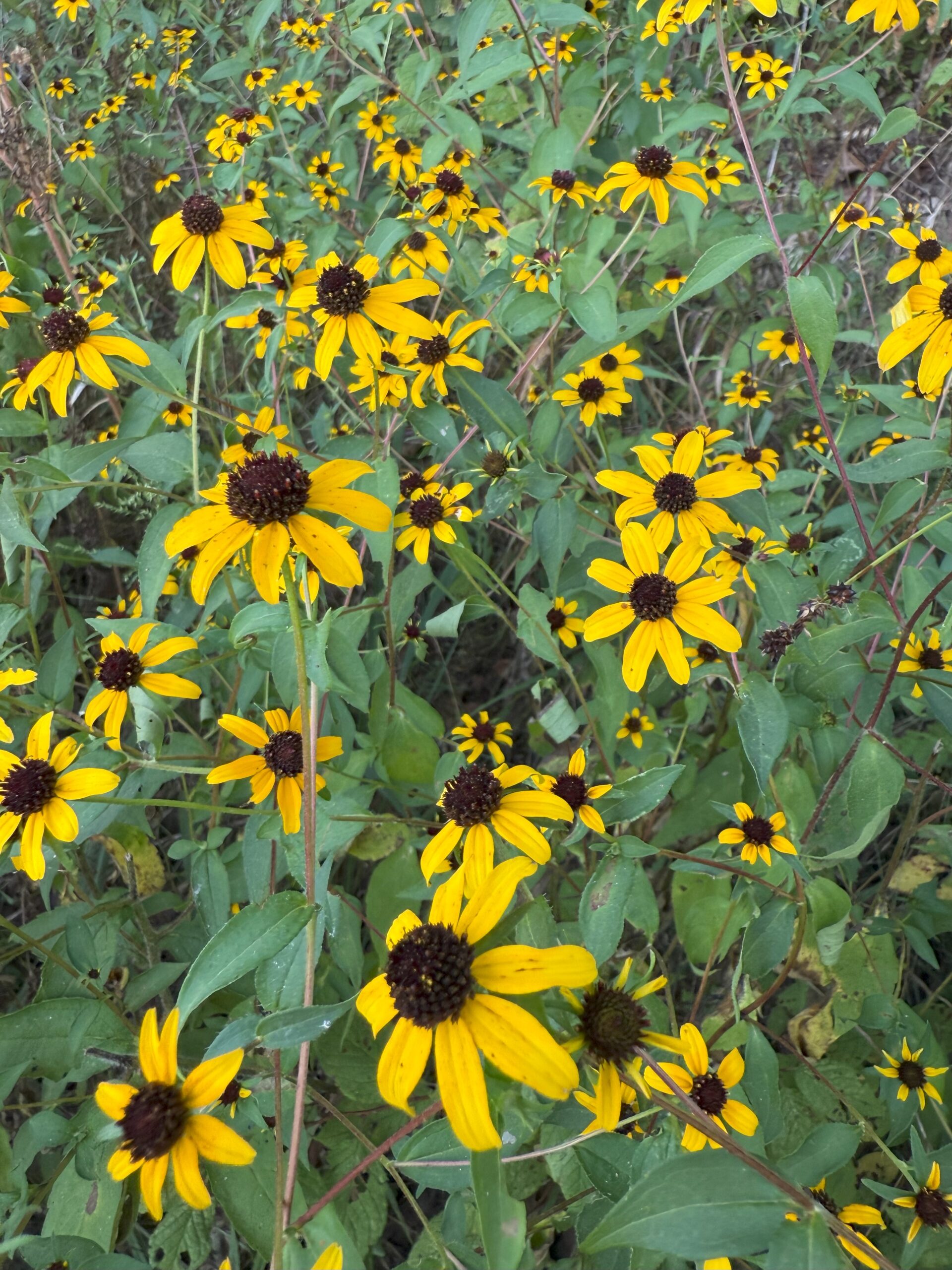 Browneyed susan is showy yellow flower loaded with blooms in late summer. It can be an annual, biennial, or short lived perennial. Height of this species is variable with plants tending to be shorter in areas with more shade. Browneyed susan is found in river bottoms and other consistently wet areas. Consider this plant to add late summer color.