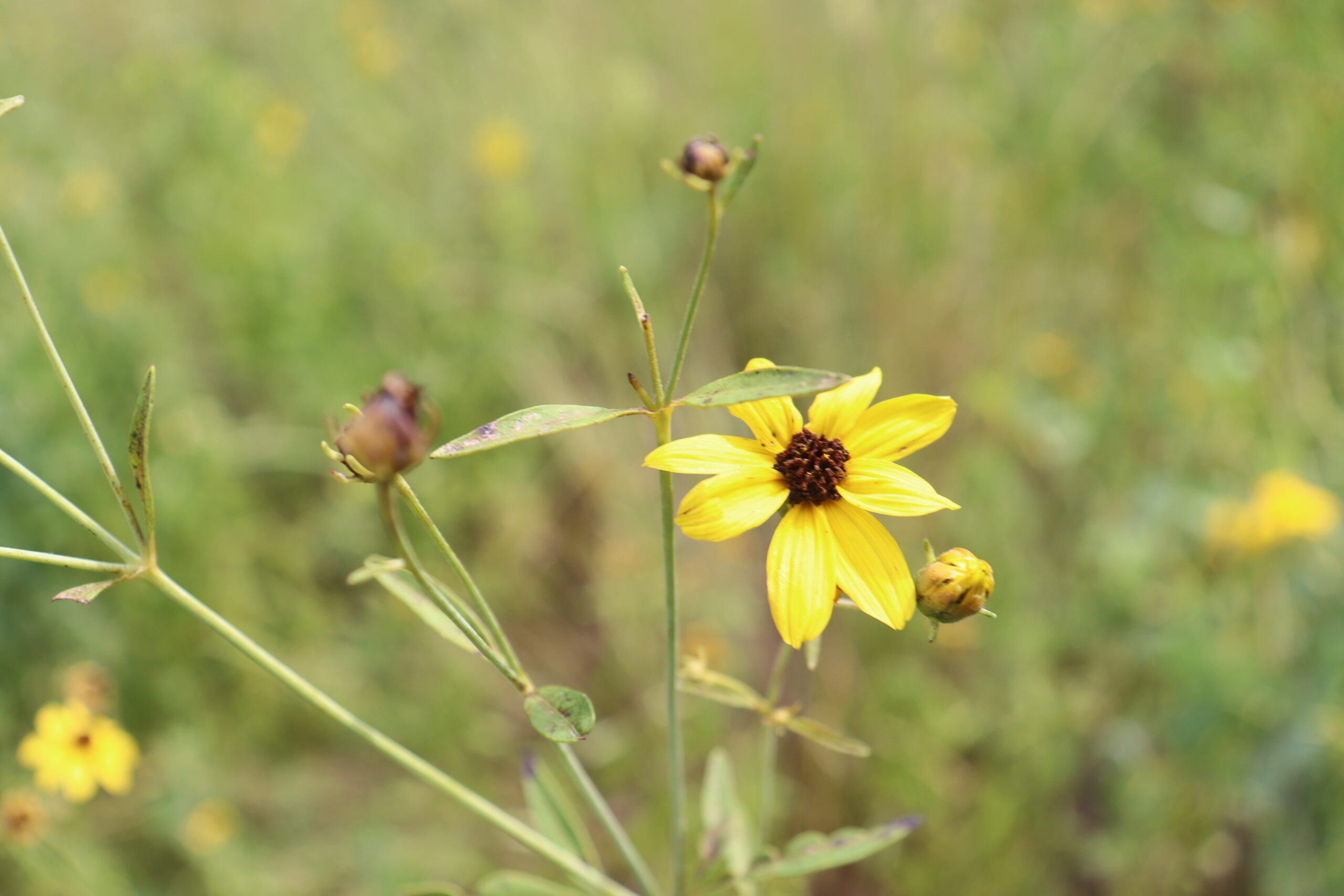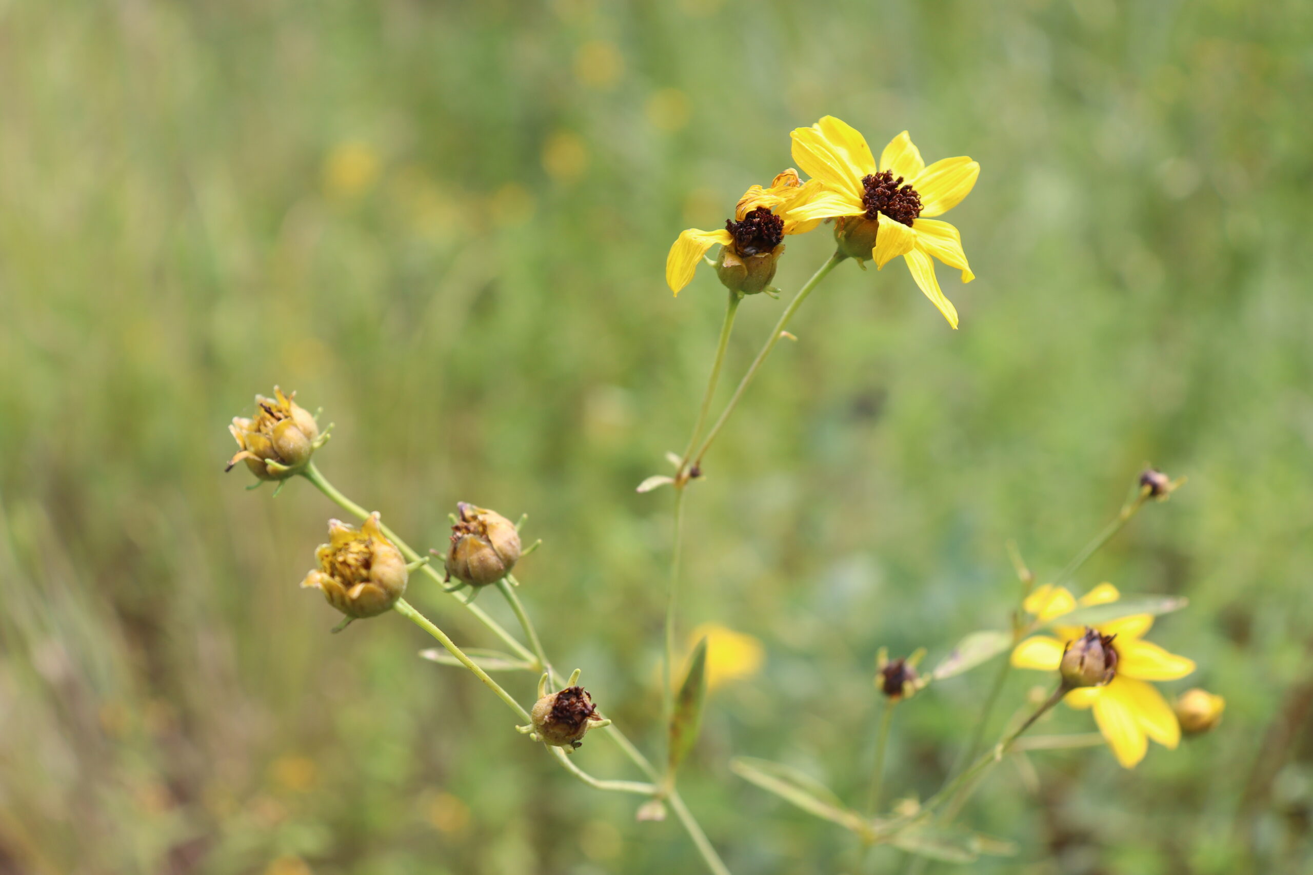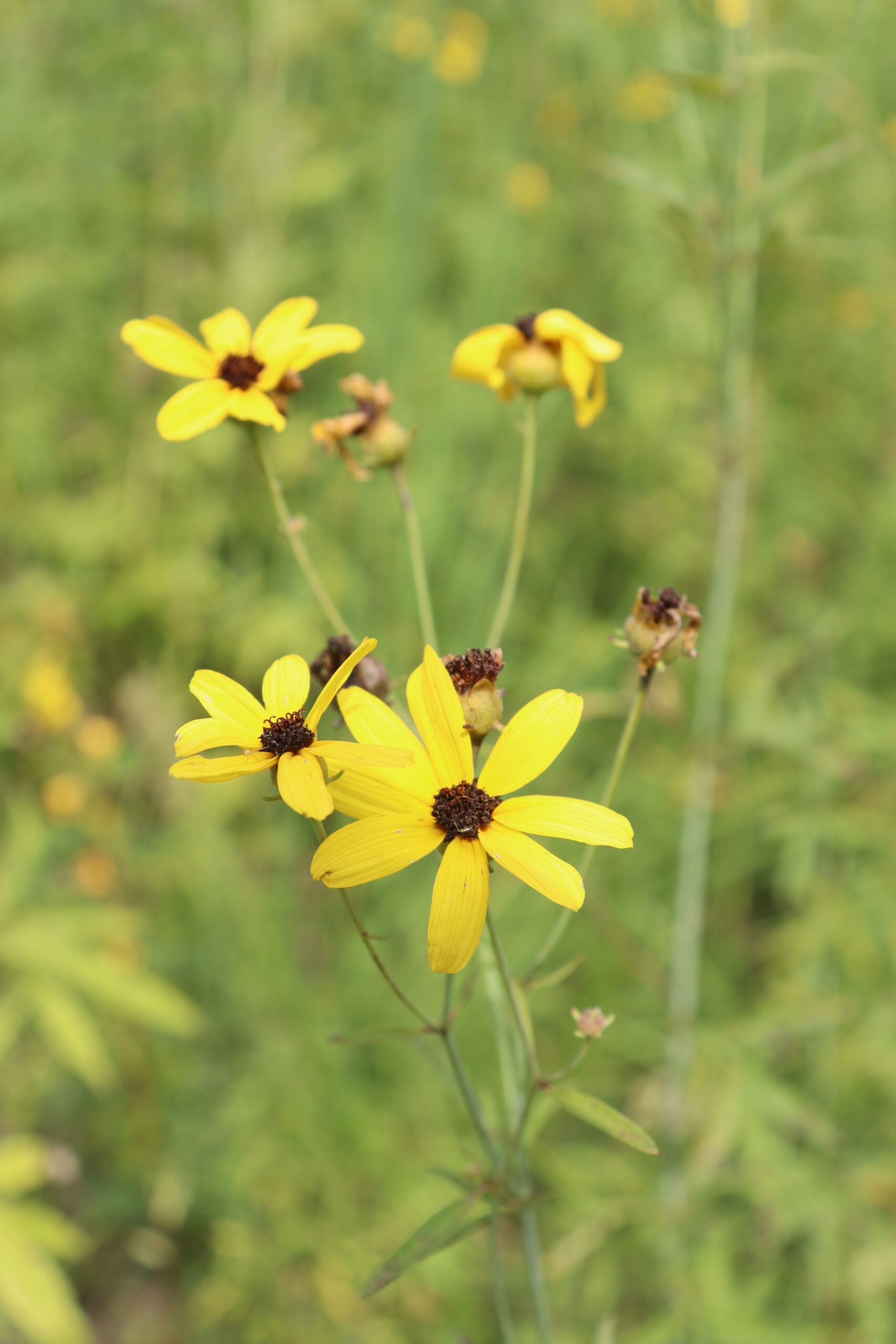 A large coreopsis species that provides a show of mid summer color in plantings. Found in pastures, prairies, and glade edges. Plants are up to six feet tall, topped with bright yellow flowers. Blooms from July to August. Useful in pollinator plantings, diverse pastures, informal plantings.